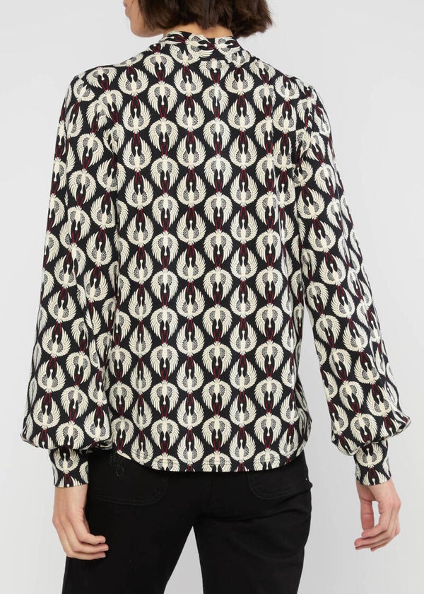 92% eco-viscose 8% elastan. Heerlijke blouse met een striksluiteing in de hals. Valt ruim op maat