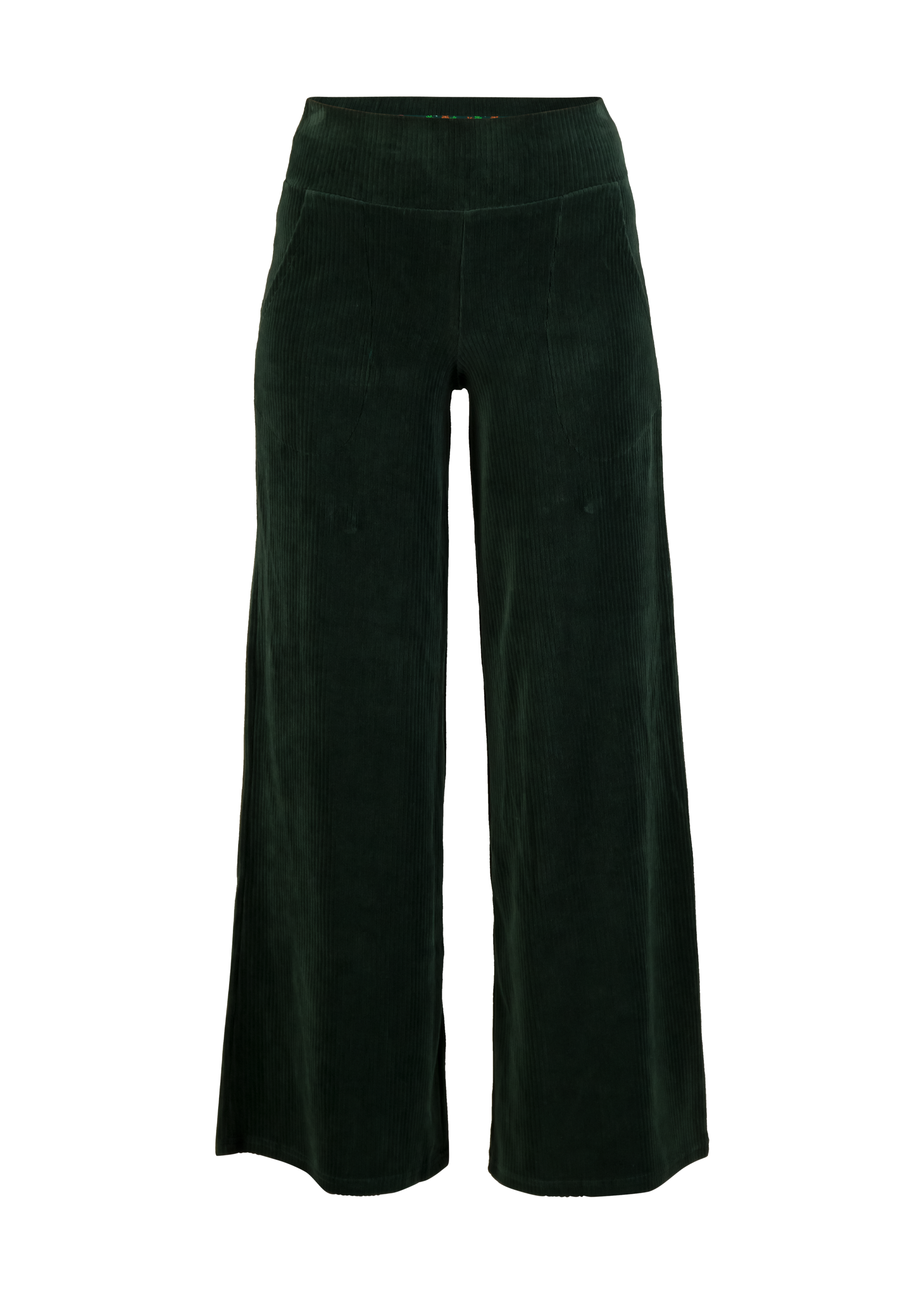 80% bio-katoen 20% gerecycled polyester. Heerlijke wijde broek, korte lengte. Valt in de taille niet groot dus bij twijfel raad ik de grootste maat aan